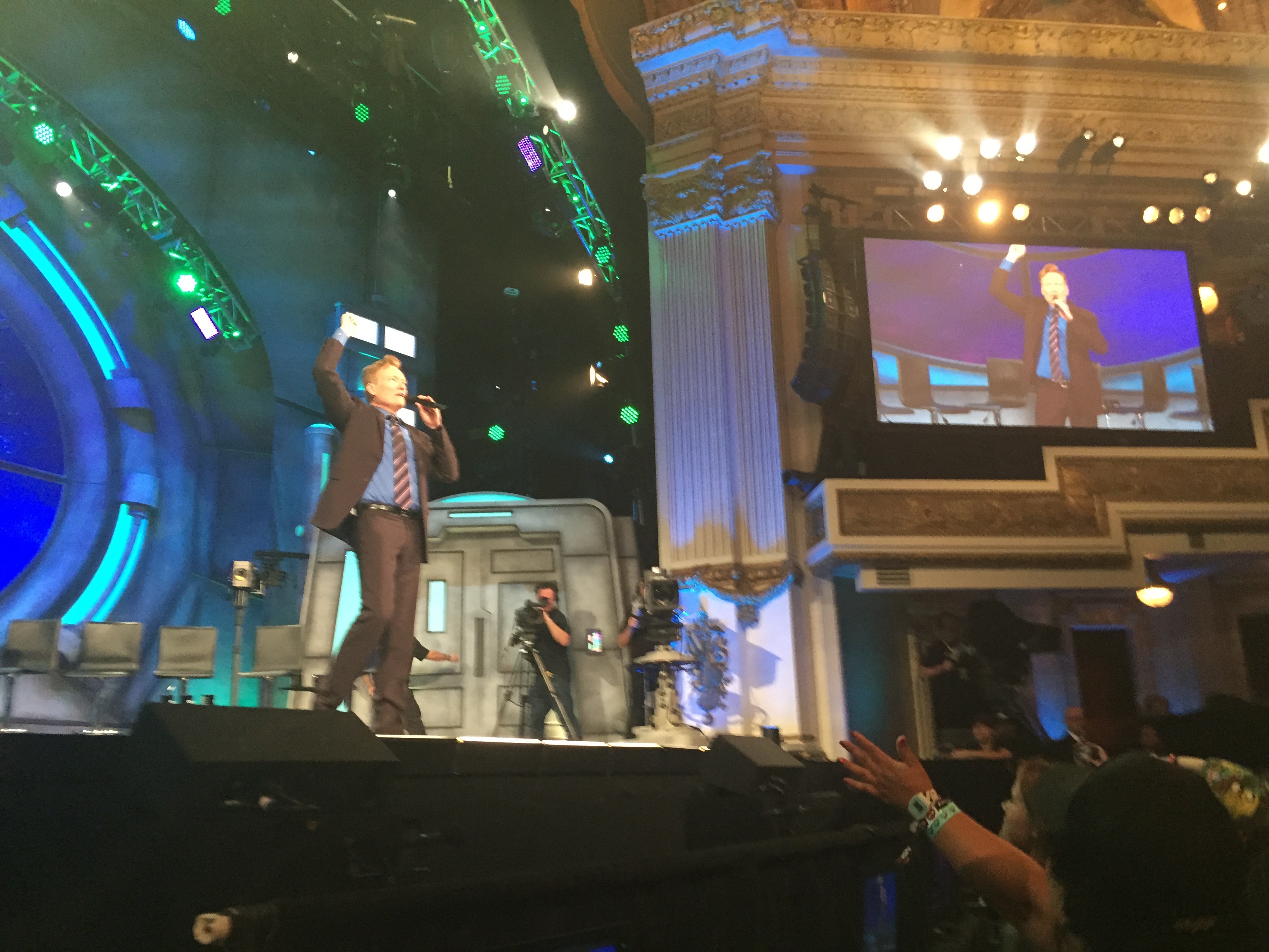Those of you that know I’m also a comedian, probably know of my dream to host a late night talk/variety show. Ever so often, I try to see these shows live, to see how the pros do it. Though I’ve seen Leno and Craig Ferguson do it, Conan O’ Brien was in town doing his show for the convention. I mean, what a way to kill two birds with one stone. I didn’t think I would actually get in, because of the sheer number of people that are in town that weekend, but not only did I get in, I got to see the action from the second row! Plus, the panels from Hall H were guests on the show, so I didn’t have to camp out all night to see the Game of Thrones or Walking Dead cast.