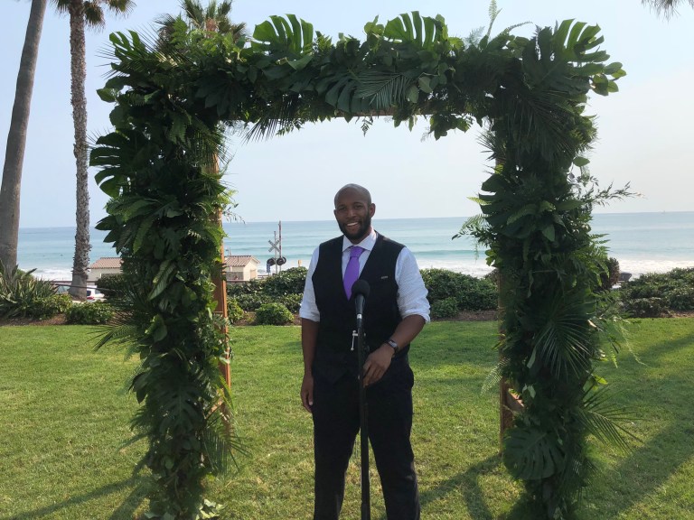 For one, setting up for a ceremony is a highlight. Being able to witness the “love in the air” is what really sets my job apart from other types of DJs.Ā In this photo I’ve just set up the microphone that the officiant is going to use for her sermon. Hope they didn’t mind me taking a snap for myself!