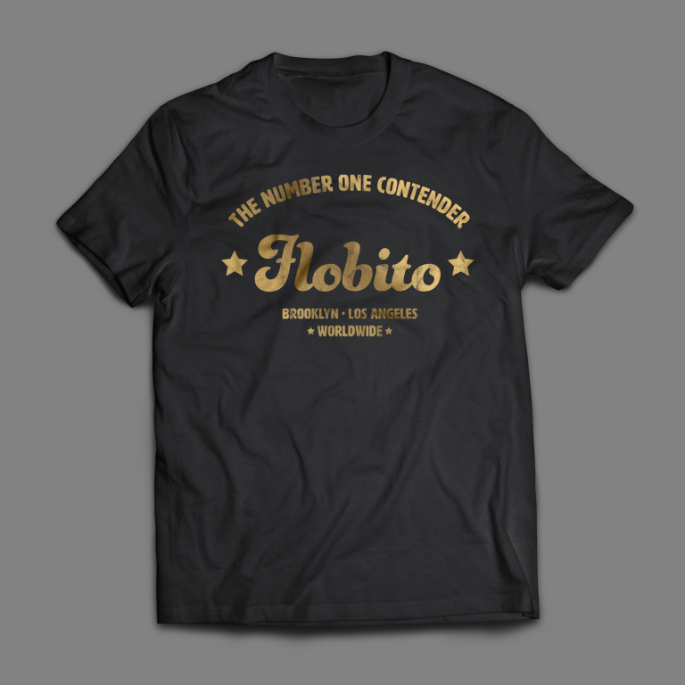 I wanted a design that captured the flavor of my classic DJ work shirt, but give it more of a “Gleason’s Gym” edge. The original design is in white, but the limited edition birthday version is in GOLD. Feel like a champ, even if you’re the number one contender.