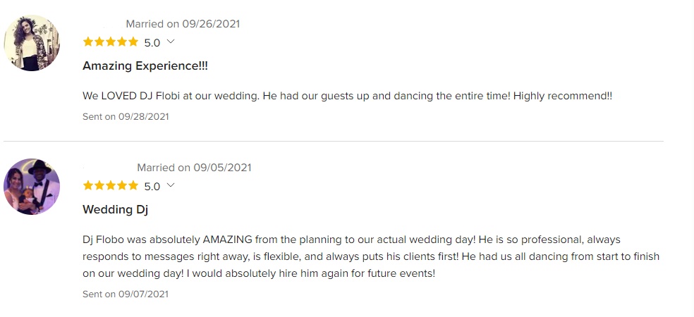 You see, there are bigger companies out there. Ones with dedicated prospecting staff, multiple DJs at their disposal, the financial wiggle room to offer cut rate pricing, and are in possession of tools that can dominate Internet searches. The only thing I have in my arsenal is my commitment to service. It’s providing my custom approach to my clients at a speed that demonstrates that I care . And when they’re happy enough to leave a review, it allows other couples to see what this “little company than could” can do for others.